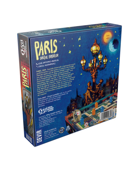 Paris,1889 - Orașul Luminilor este un joc pentru două persoane care durează aproximativ 30 de minute, în care fiecare jucător dezvoltă și iluminează metropola pariziană.